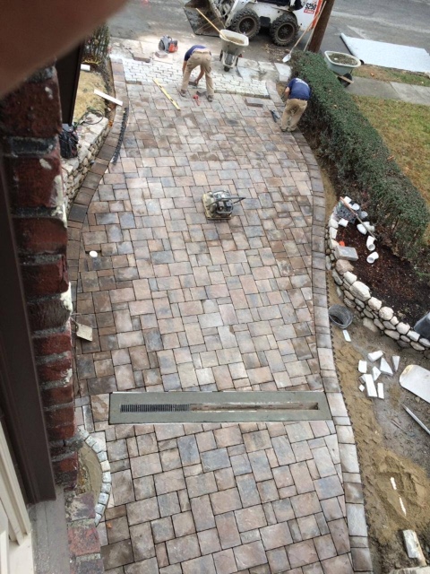 Here are some of the completed photos of the project. As you can see from the aerial shot, due to excessive flooding in the area, a drain halfway down the driveway was installed to direct water away from the garage.